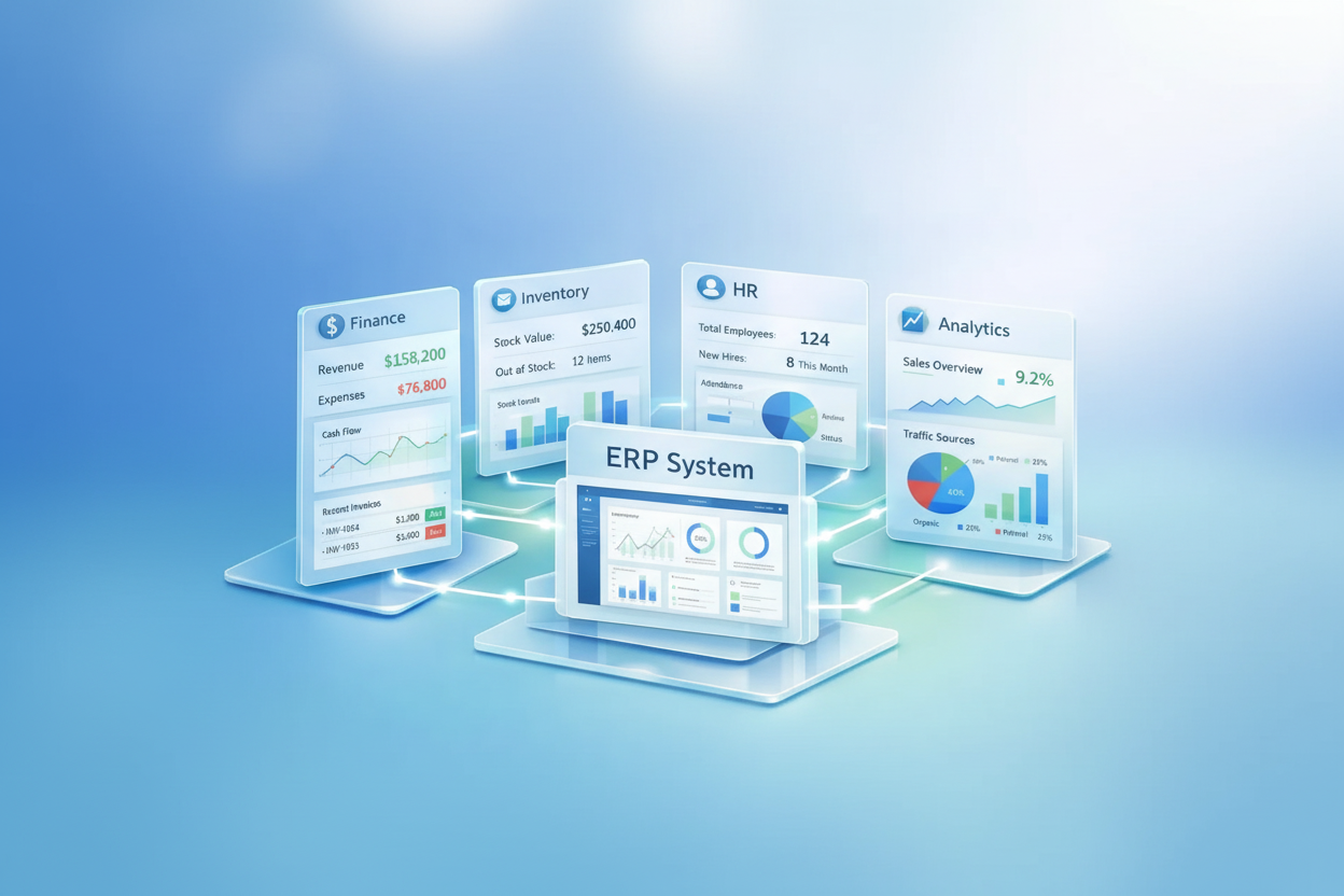 We build fully customized ERP solutions designed around your workflows—helping you manage operations, data, and growth from one powerful platform.